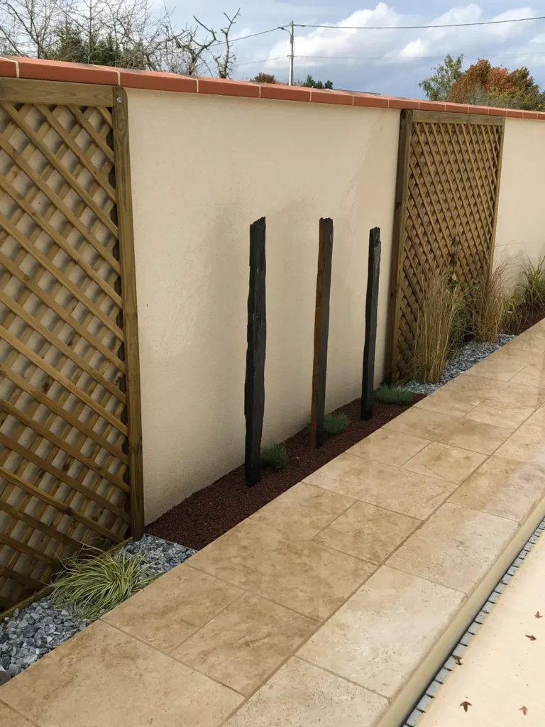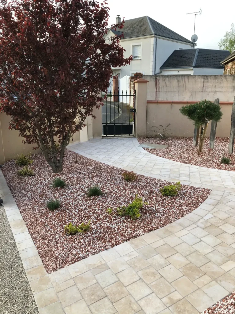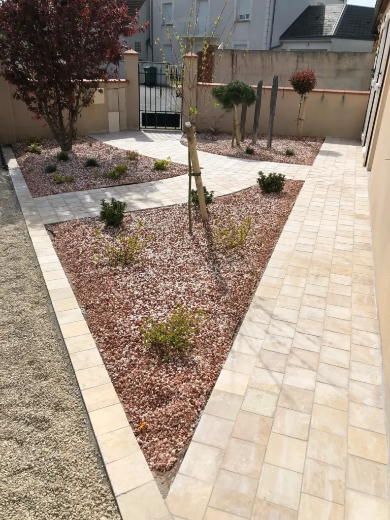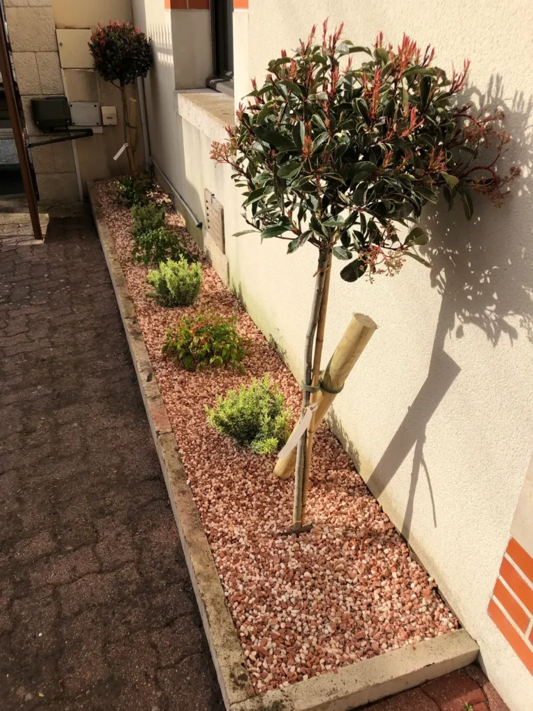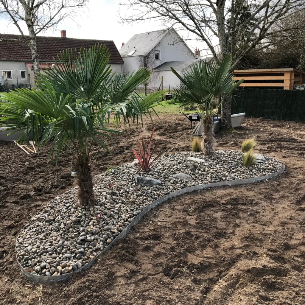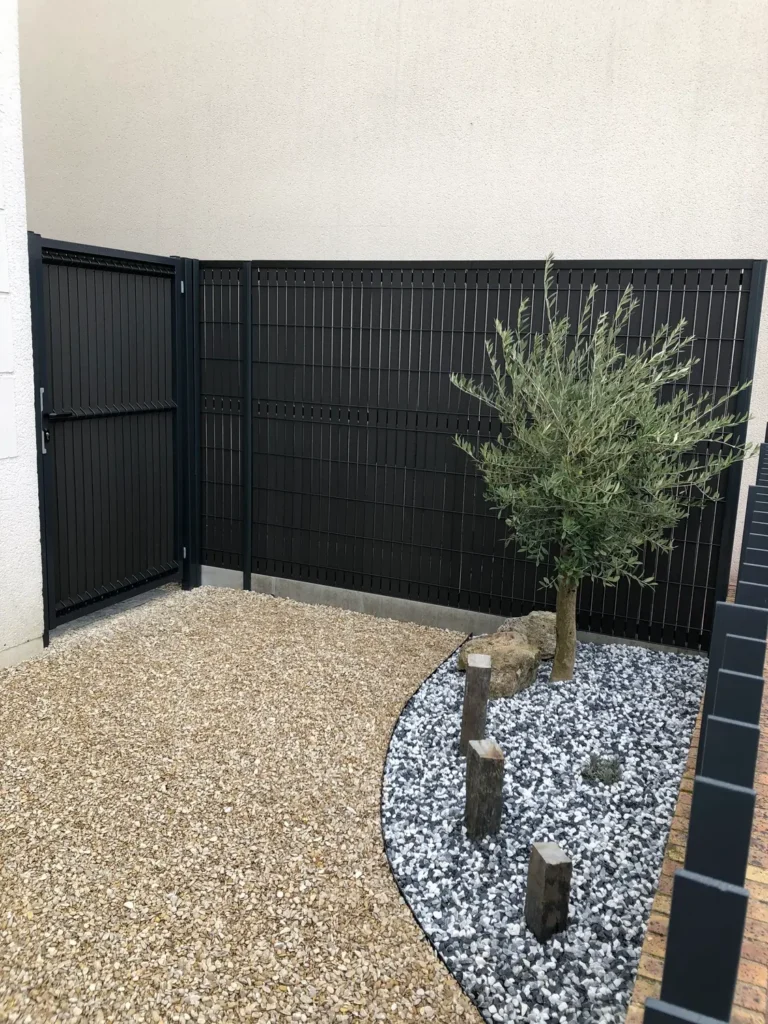 Jardins secs composés de graviers, galets, piquets d’ardoise, …